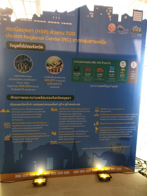 ทั้งนี้ การคัดเลือกเมืองต้นแบบ TOD พิจารณาจากปัจจัยต่างๆ ได้แก่ 1. เศรษฐกิจเข้มแข็ง 2. แหล่งงานขนาดใหญ่ 3. อัตราส่วนการเพิ่มของประชากรเมืองสูง และมีความจำเป็นเร่งด่วนในการพัฒนา TOD 4. พื้นที่มีความพร้อมในการพัฒนา ซึ่งจากการศึกษาโครงการได้แบ่งประเภทของ TOD ให้สอดคล้องกับศักยภาพและบริบทของสถานี โดยสถานีรถไฟอยุธยา (HSR) ได้รับคัดเลือกให้เป็นตัวแทน TOD ประเภทศูนย์การค้าระดับภูมิภาค (Regional Center) ในกลุ่มสายเหนือ ซึ่งการพัฒนาเมืองต้นแบบ TOD จะช่วยเพิ่มความคุ้มค่าในการลงทุนพัฒนาโครงสร้างพื้นฐานขนาดใหญ่ ช่วยกระจายความเจริญและเพิ่มโอกาสทางเศรษฐกิจให้กับจังหวัดพระนครศรีอยุธยา และจังหวัดใกล้เคียงต่อไป