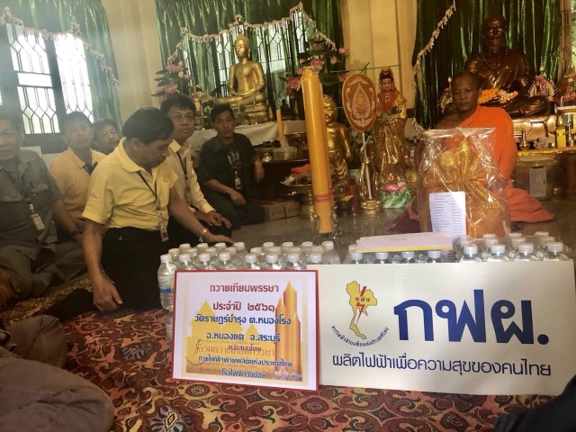 เมื่อเดือนกรกฎาคม 2561 การไฟฟ้าฝ่ายผลิตแห่งประเทศไทย (กฟผ.) โรงไฟฟ้าวังน้อย โดยผู้บริหาร และผู้ปฏิบัติงานโรงไฟฟ้าวังน้อย พร้อมใจร่วมกิจกรรมถวายเทียนพรรษา เครื่องสังฆทาน น้ำดื่ม ยารักษาโรค และพัดลม จำนวน 15 วัด ในพื้นที่รอบโรงไฟฟ้าวังน้อย 3 จังหวัด ได้แก่ จังหวัดพระนครศรีอยุธยา จังหวัดปทุมธานี และจังหวัดสระบุรี ได้แก่ วัดไพรฑูรย์ถนิมาราม วัดสว่างอารมณ์ และวัดลำพระยา ตำบลวังจุฬา วัดยมนาตามธรรม และวัดวงษ์สวรรค์ ตำบลชะแมบ และวัดธรรมจริยา ตำบลข้าวงาม อำเภอวังน้อย จังหวัดพระนครศรีอยุธยา วัดราษฎร์บำรุง ตำบลหนองโรง อำเภอหนองแค จังหวัดสระบุรี วัดบึงกาสาม วัดจุฬาจินดาราม วัดเจริญบุญ และวัดราษฎรบำรุง ตำบลบึงกาสาม วัดศรีคัคณางค์ วัดสุขบุญฑริการาม และวัดสอนดีศรีเจริญ ตำบลบึงชำอ้อ อำเภอหนองเสือ และวัดอู่ข้าว ตำบลคลองเจ็ด อำเภอคลองหลวง จังหวัดปทุมธานี เนื่องในโอกาสวันเข้าพรรษา เพื่อเป็นการสืบสานวัฒนธรรมประเพณีไทยอันดีงามของพระพุทธศาสนาต่อไป