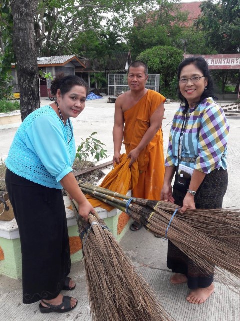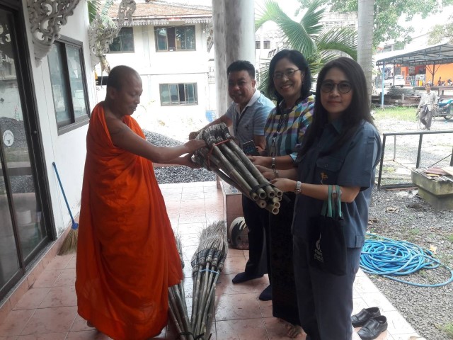 ผู้ปฏิบัติงานโรงไฟฟ้าวังน้อยร่วมกันบริจาคเงินซื้อไม้กวาดทางมะพร้าวถวายวัด