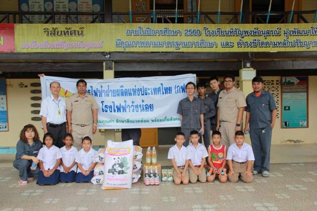 เมื่อวันที่ 21 กันยายน 2558 นายอดุลย์ ทองเล็ก (กผรน๑-ฟ.) และ นายกิตติศักดิ์ จารุอเนก (วศ.10) พร้อมด้วยผู้ปฏิบัติงานสังกัด กองการผลิต 1 (กผรน๑-ฟ.) ร่วมกันมอบข้าวสารอาหารแห้งให้นักเรียนโรงเรียนวัดจุฬาจินดาราม และโรงเรียนหิรัญพงษ์อนุสรณ์ เพื่อสนับสนุนโครงการอาหารกลางวัน ให้นักเรียนได้บริโภค และมีพัฒนาการที่ดี ตลอดจนเป็นการสร้างความสัมพันธ์อันดีกับชุมชนรอบๆ โรงไฟฟ้าฯ
