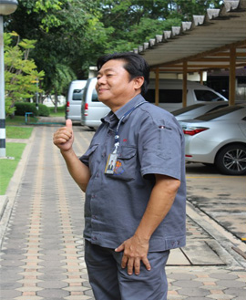 ส่วนนายชาญชัย จรัสบุญเสรี ช.7 แผนกบำรุงรักษาอุปกรณ์ควบคุมเครื่องมือวัดกองบำรุงรักษาโรงไฟฟ้า กล่าวว่า สมัครจิตอาสาเฉพาะกิจในงานพระราชพิธีฯ ด้านงานดอกไม้จันทน์ ดีใจที่ได้เป็นส่วนหนึ่งในการช่วยเหลือสังคม และภาคภูมิใจที่เกิดในรัชกาลที่ 9 ซึ่งพ่อหลวงท่านเป็นตัวอย่างที่ดีมากสำหรับให้เราทุกคนได้ทำตามแบบอย่างของท่าน ในโอกาสนี้ถ้าเรามีเวลาก็ควรสละเวลาทำประโยชน์เพื่อสังคม เพื่อทำให้สังคมมีความสุขที่ยั่งยืนต่อไป