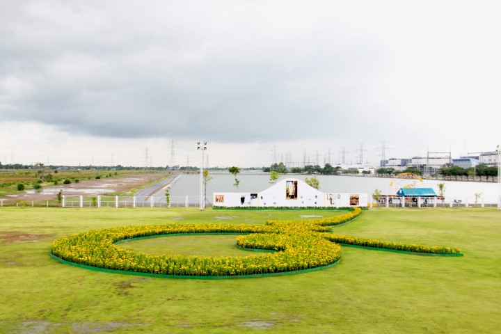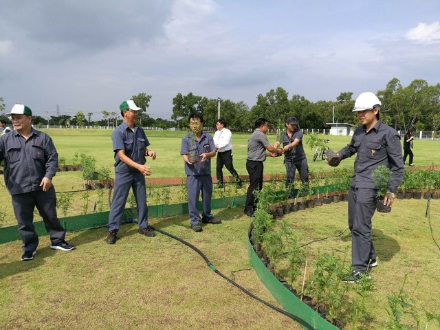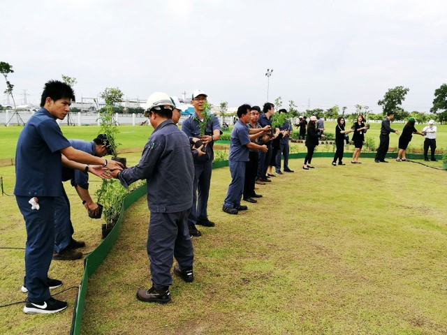 ผู้ปฏิบัติงานโรงไฟฟ้าวังน้อยพร้อมใจกันจัดเรียงต้นดาวเรืองเป็นสัญลักษณ์เลข ๙