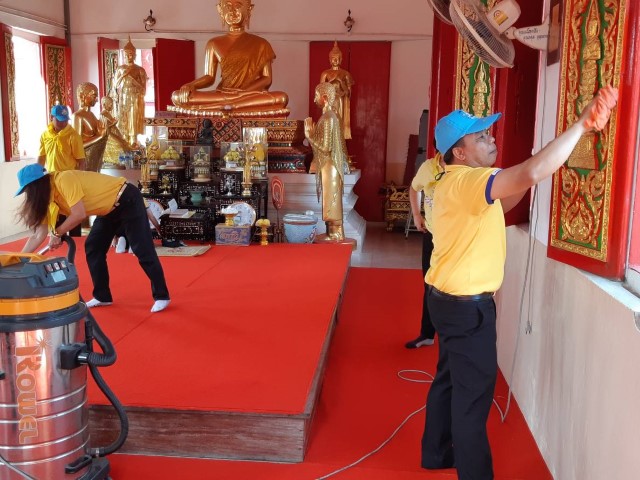 เราทำความดีด้วยหัวใจกำจัดผักตบชวา และทำความสะอาดศาสนสถาน
