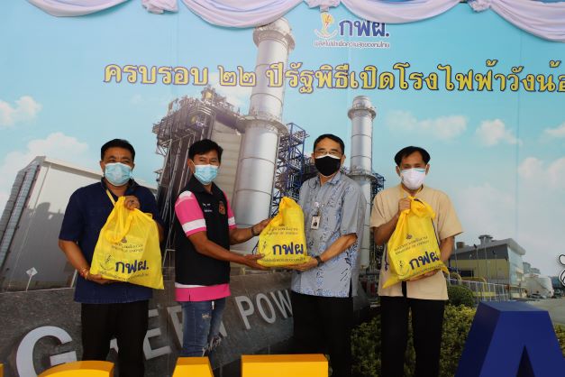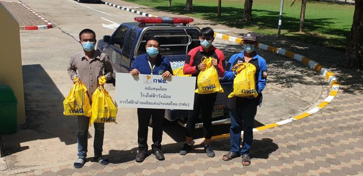 วันที่ 1 กรกฎาคม 2564โรงไฟฟ้าวังน้อย นำโดย นายทินกร ลิมปนสุทธิพงศ์ ผู้ช่วยผู้อำนวยการโรงไฟฟ้าวังน้อย พร้อมด้วย นายสุรัตน์ วิชชุลดา วิศวกรระดับ 11 และผู้ปฏิบัติงาน โรงไฟฟ้าวังน้อย มอบถุงยังชีพ จำนวน 30 ถุง และน้ำดื่มแบบถ้วย จำนวน 50 ลัง ให้แก่ องค์การบริหารส่วนตำบลข้าวงาม โดยมี นายพิเชษฐ์ พุฒตาล กำนันตำบลข้าวงาม เป็นผู้รับมอบ รวมทั้งมอบถุงยังชีพ จำนวน 10 ถุง และน้ำดื่มแบบขวด จำนวน 20 โหล ให้แก่ องค์การบริหารส่วนตำบลหันตะเภา เพื่อให้นำไปแจกจ่ายให้แก่ผู้สัมผัสเสี่ยงสูงที่กักตัวอยู่ที่บ้าน ณ อาคารที่ทำการโรงไฟฟ้าวังน้อย