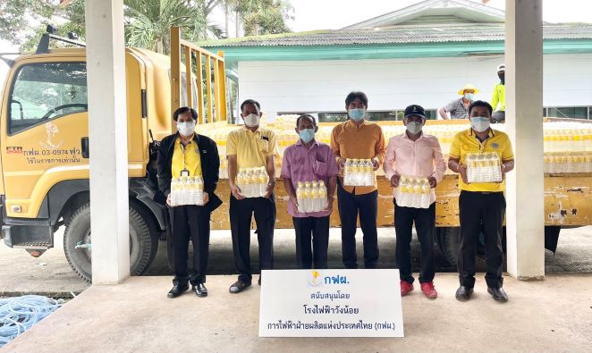 กฟผ.โรงไฟฟ้าวังน้อย มอบน้ำดื่ม น้ำใจ กฟผ.ให้ศูนย์พักคอย ต.วังจุฬา ต.ชะแมบ ต.ข้าวงาม ต.วังน้อย