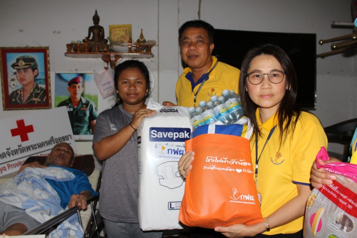 สำหรับผู้ป่วยติดเตียง ผู้พิการ ผู้สูงอายุ และผู้ยากไร้ จำนวน 5 ราย ได้แก่ นางกัญญาภัทร แจ้งโรจน์ อายุ 43 ปี เป็นผู้พิการ นายประกอบ คำลาชา อายุ 77 ปี ป่วยเป็นโรคความดันโลหิตสูง ไขมัน และอัมพฤกษ์ นายสุรพล จันทร์เติม อายุ 57 ปี ป่วยแขนขวาอ่อนแรง ใส่สายอาหาร นายไพบูลย์ บุญยรัตพันธ์ อายุ 66 ปี เป็นโรคความดันโลหิตสูง หัวใจ และนางวิรัตน์ ภูเงิน อายุ 81 ปี เป็นผู้ยากไร้