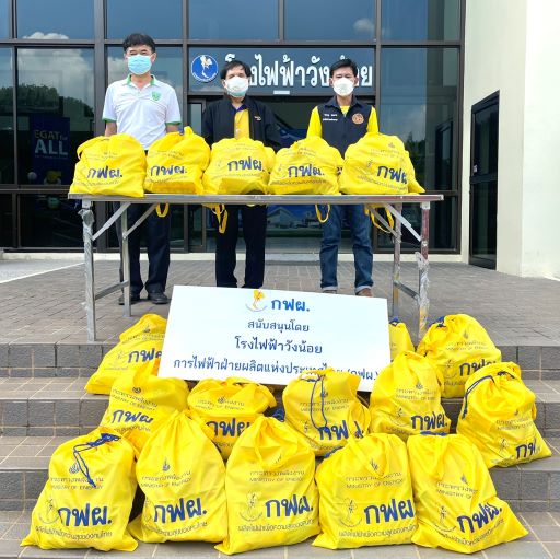 กฟผ. โรงไฟฟ้าวังน้อย ส่งมอบถุงยังชีพ พร้อมน้ำดื่ม น้ำใจ กฟผ.