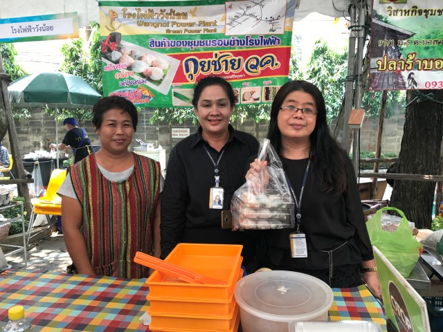 ระหว่างวันที่ 24-28 เมษายน 2560 โรงไฟฟ้าวังน้อยได้นำชุมชนรอบโรงไฟฟ้าไปร่วมออกร้านจำหน่ายสินค้าในงานวันคล้ายวันสถาปนาครบรอบ 48 ปี กฟผ. องค์การใสสะอาด น้อมสืบสานปณิธานงานของพ่อ และงาน CSR DAY ประจำปี 2560 ณ สำนักงานใหญ่ กฟผ. อำเภอบางกรวย จังหวัดนนทบุรี ซึ่งภายในงานได้จัดให้มีการออกร้านจำหน่ายสินค้าและผลิตภัณฑ์จากชุมชนรอบๆ เขตเขื่อน และโรงไฟฟ้าของ กฟผ. ทั่วประเทศ เพื่อเป็นการแนะนำสินค้าของชุมชนให้เป็นที่รู้จัก ช่วยสร้างรายได้ และเป็นการเชื่อมความสัมพันธ์อันดีระหว่าง กฟผ. กับชุมชนในพื้นที่ โดยชุมชนรอบโรงไฟฟ้าวังน้อยได้นำขนมกุยช่ายแป้งสด กุ้งอบวุ้นเส้น และผลิตภัณฑ์จากเห็ด ไปร่วมจำหน่าย ซึ่งบรรยากาศภายในงานเป็นไปด้วยความคึกคัก มีผู้ปฏิบัติงาน กฟผ. อดีตผู้ปฏิบัติงานที่เกษียณอายุ และชุมชนชาวบางกรวย มาร่วมอุดหนุนสินค้าเป็นจำนวนมาก