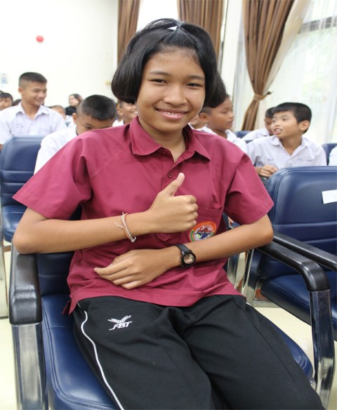 เด็กหญิงกรกนก สาระนิด (น้องปอย) อายุ 11 ปี ชั้นประถมศึกษาปีที่ 6 โรงเรียนบ้านลำแดง กล่าวว่า ดีใจที่ได้รับทุนการศึกษาในปีนี้ โดยตั้งใจจะเก็บทุนที่ได้ไว้ 100 บาท ส่วนที่เหลือจะให้ที่บ้านเพื่อแบ่งเบาภาระ เพราะที่บ้านมีอาชีพทำนา ซึ่งตนอาศัยอยู่กับพ่อและย่า ขอขอบคุณโรงไฟฟ้าวังน้อยที่สนับสนุนทุนการศึกษาในครั้งนี้