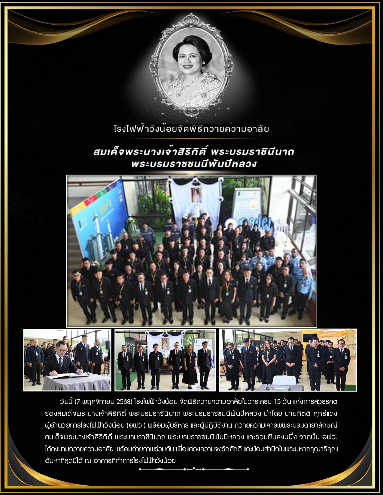 โรงไฟฟ้าวังน้อย จัดพิธีถวายความอาลัย พระพันปีหลวง